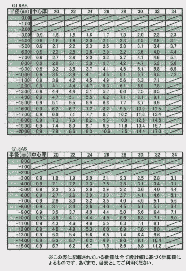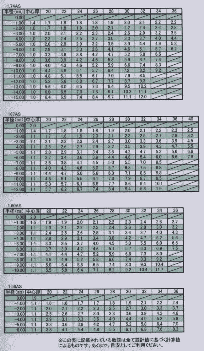 マイナスレンズ厚み表