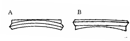 下図のAのようなヤゲンをつけたら、鼻側と耳側では上縁や下縁に比べてヤゲン位置が後ろに下がるので、