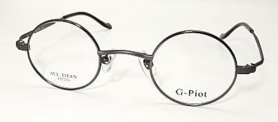 末広がり型のテンプル(腕)を持つ、 チタン製の丸メガネ