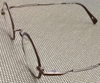 チタン製の丸メガネでは小さめの38ミリサイズ。真円です。