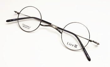 ↑ コバルト合金製の細身の丸メガネ