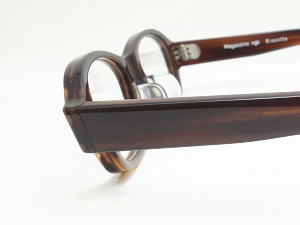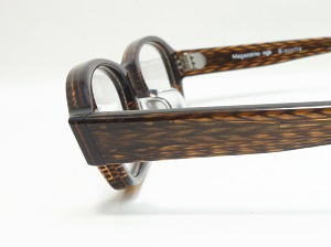 テンプル(腕)は 濃いグレー系統の横流れ